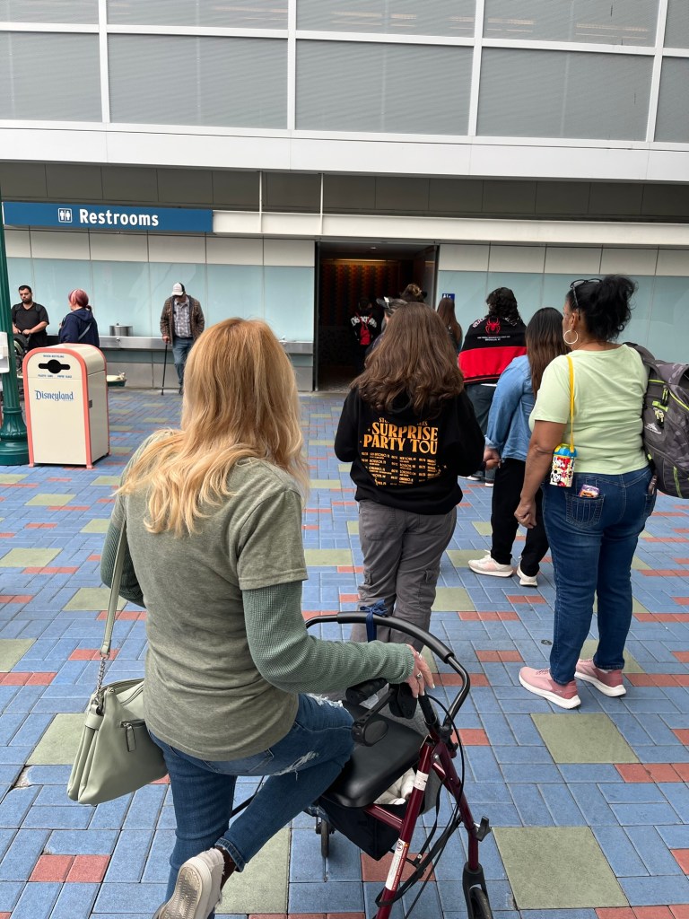 Oh, the wonderful magic of Disney! First, we got on the 50-minutes-long “line up to get into the car park” ride. And then, we got on the 15-minute “line up to get on the tram” ride. Then! A “line up for the restroom” ride. And then! The “line up for the security screening” line. And then, dum dum dum, here comes the “line up to get through the entrance” line!