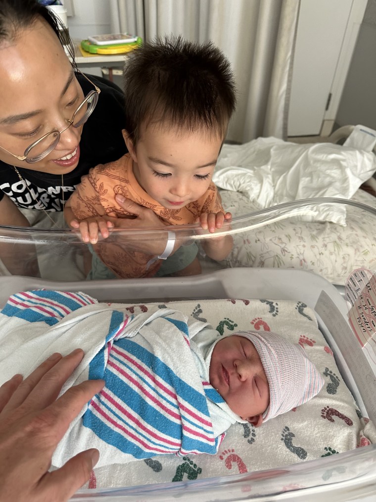 We had been prepping him months before Woori’s birth, of course. I told Tov repeatedly that there’s a baby in my belly. “Where’s the baby?” I’d prompt him, and he’d smile and point at his own belly. He did not get it.